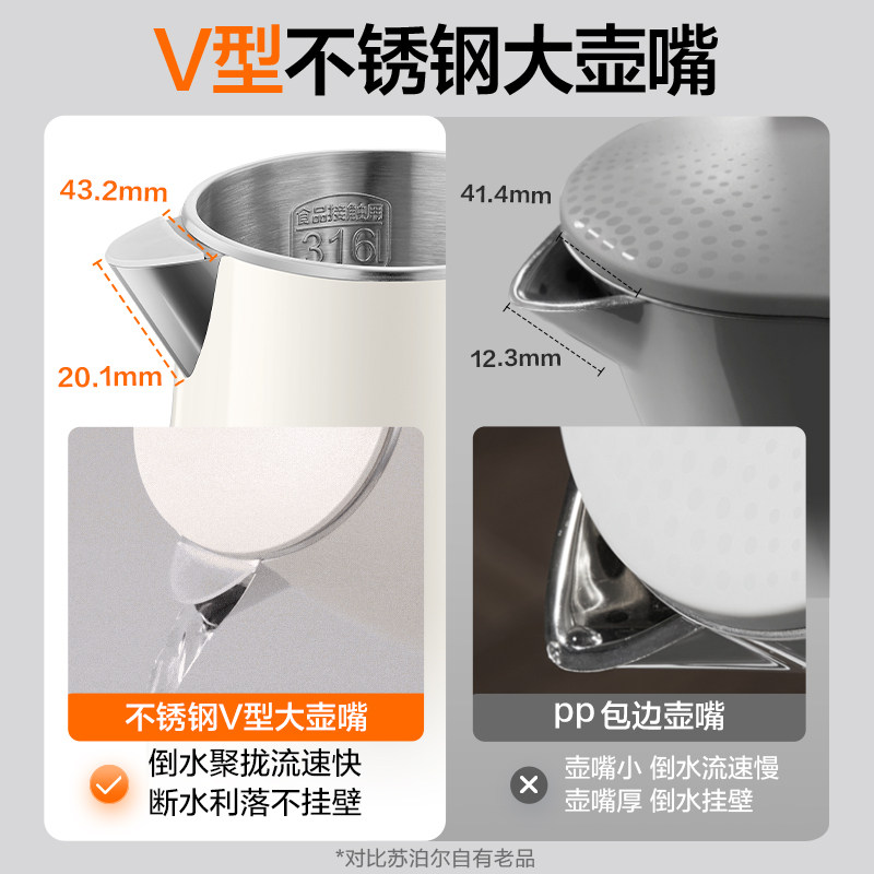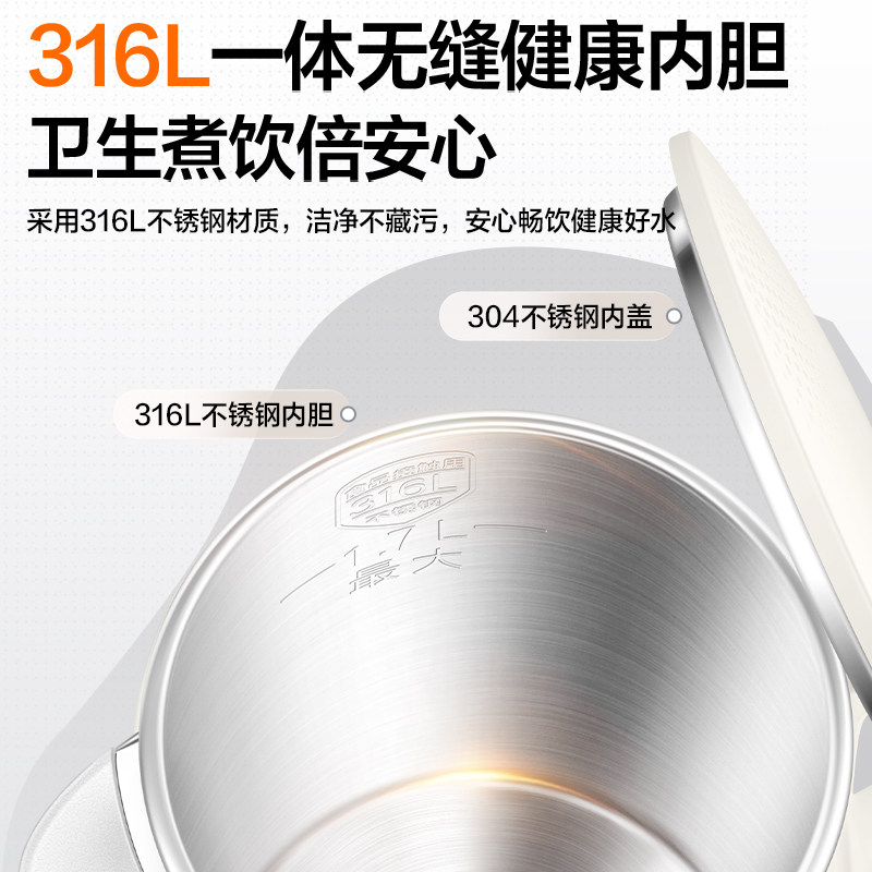苏泊尔电热水壶家用316不锈钢大容量自动断电烧水壶旗舰款新品