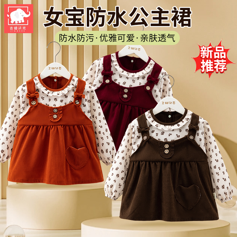 女宝宝罩衣秋冬外穿洋气公主裙吃饭围兜防水儿童围裙婴儿辅食护衣