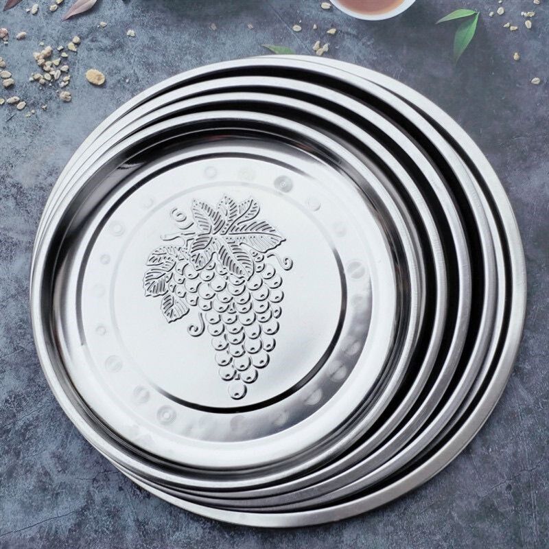 巨厚不锈钢大圆盘浅盘平盘菜盘果盘花盆垫托盘葡萄盘贡盘一体盖子