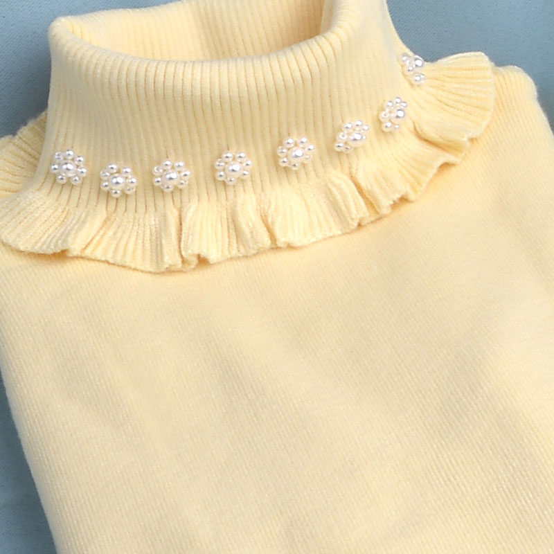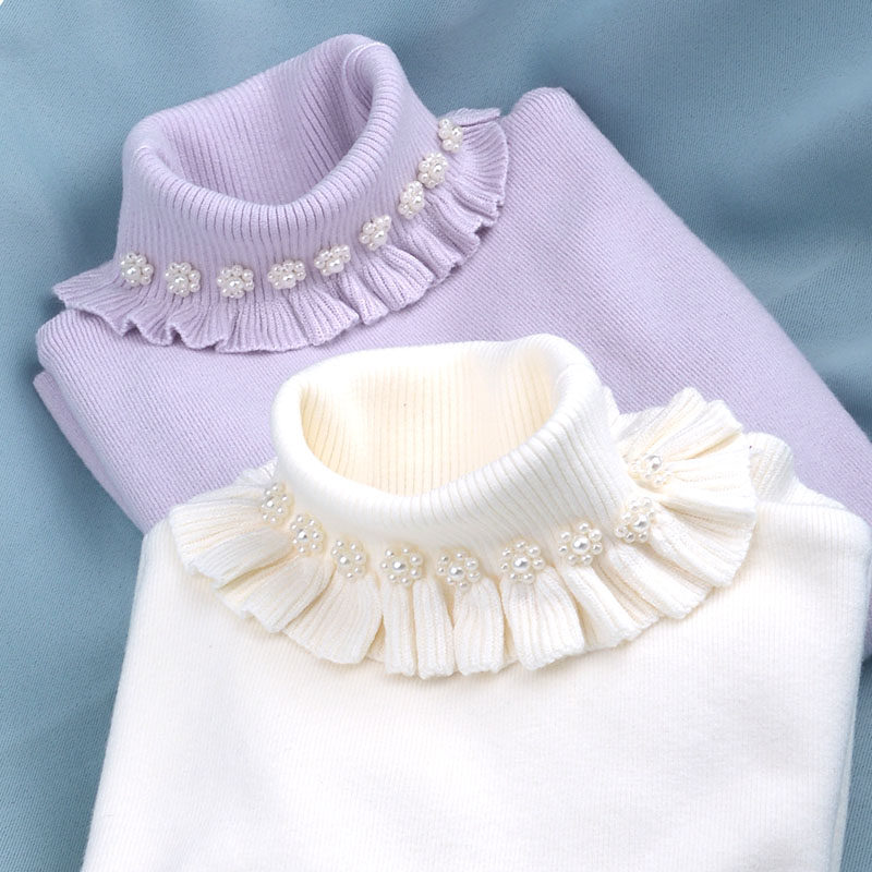 高领白色花边毛衣订珠木耳边针织衫短款花朵弹力紧身秋冬女新款上