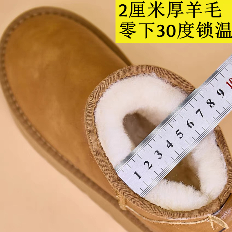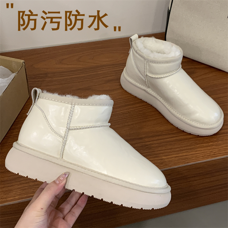 防水真皮面羊毛防滑厚底低帮加厚保暖低筒白色加绒雪地靴女棉靴