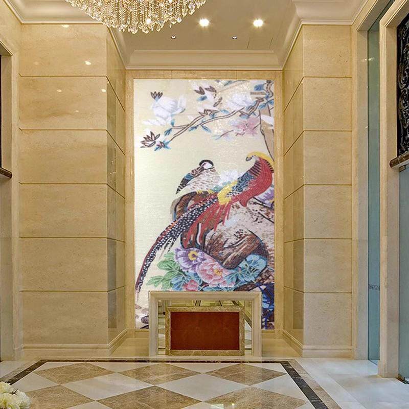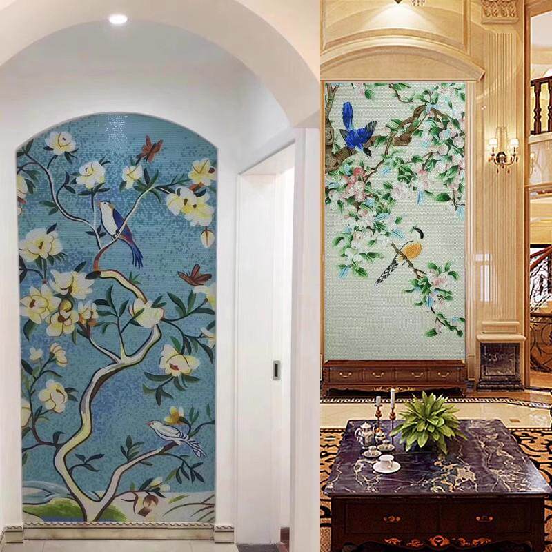 简约现代花朵艺术壁画马赛克瓷砖背景墙剪画拼图拼花卫生间定制画