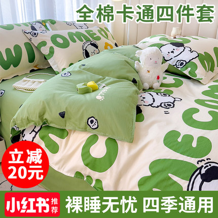 纯棉床上四件套全棉100可爱儿童床品宿舍三件套男孩被套床单床笠4