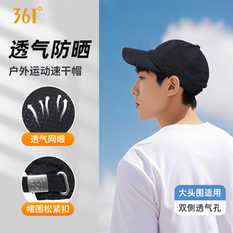 361帽子男夏季棒球帽防晒遮阳鸭舌帽速干运动帽休闲透气太阳帽女