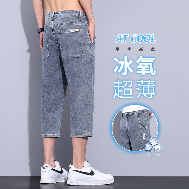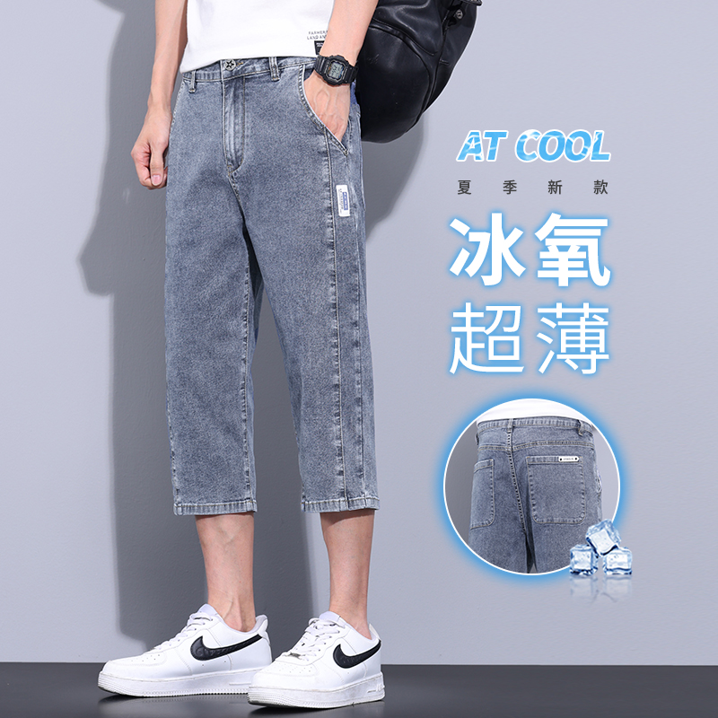 【凉感】冰丝七分牛仔短裤男士凉感宽松夏季薄款透气天丝休闲中裤