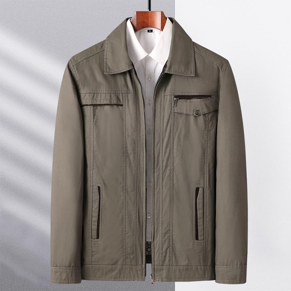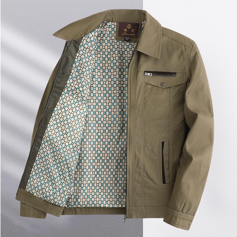 爸爸纯棉外套春秋季中年男装秋装翻领全棉上衣中老年人男士夹克衫
