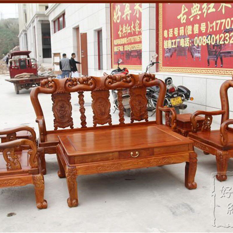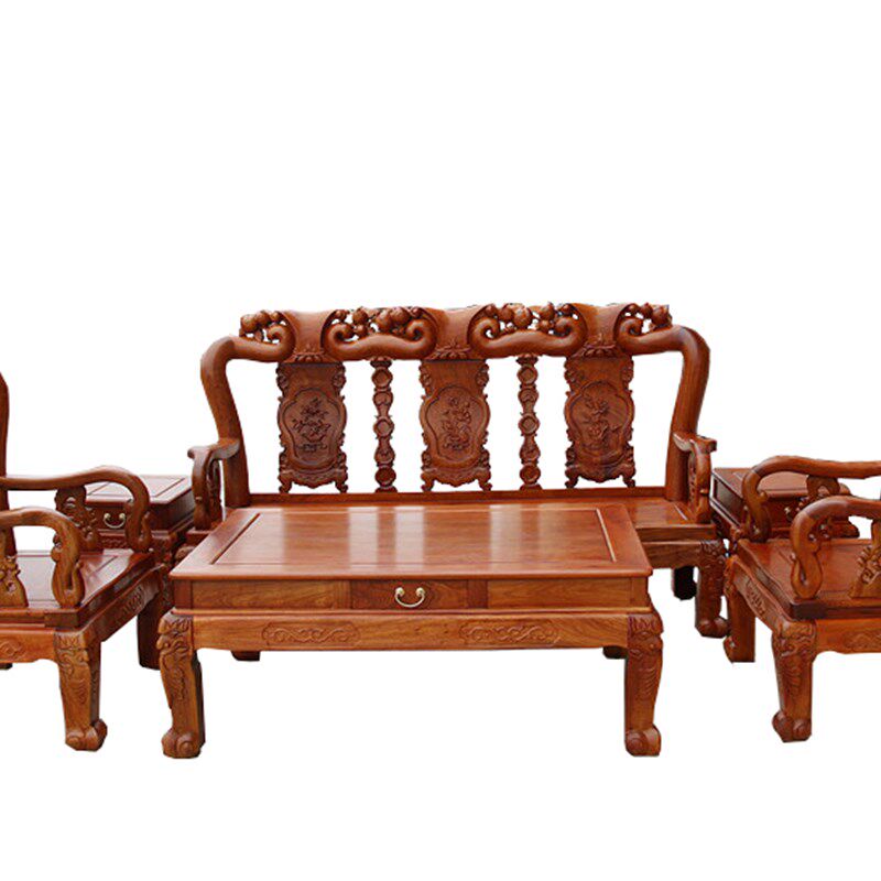 红木家具缅甸梨木雕沙发大果紫檀实木客厅六件寿桃独板