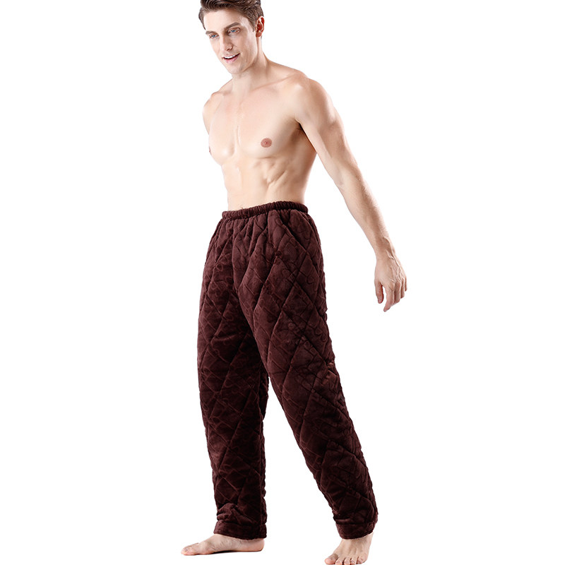 冬季男士三层加厚加绒棉裤珊瑚绒夹棉男裤法兰绒睡裤大码家居棉裤