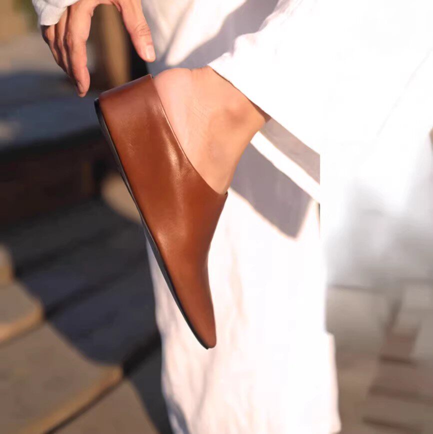坡跟包头半拖鞋女外穿高版2026夏天新款复古真皮方头一脚蹬穆勒鞋