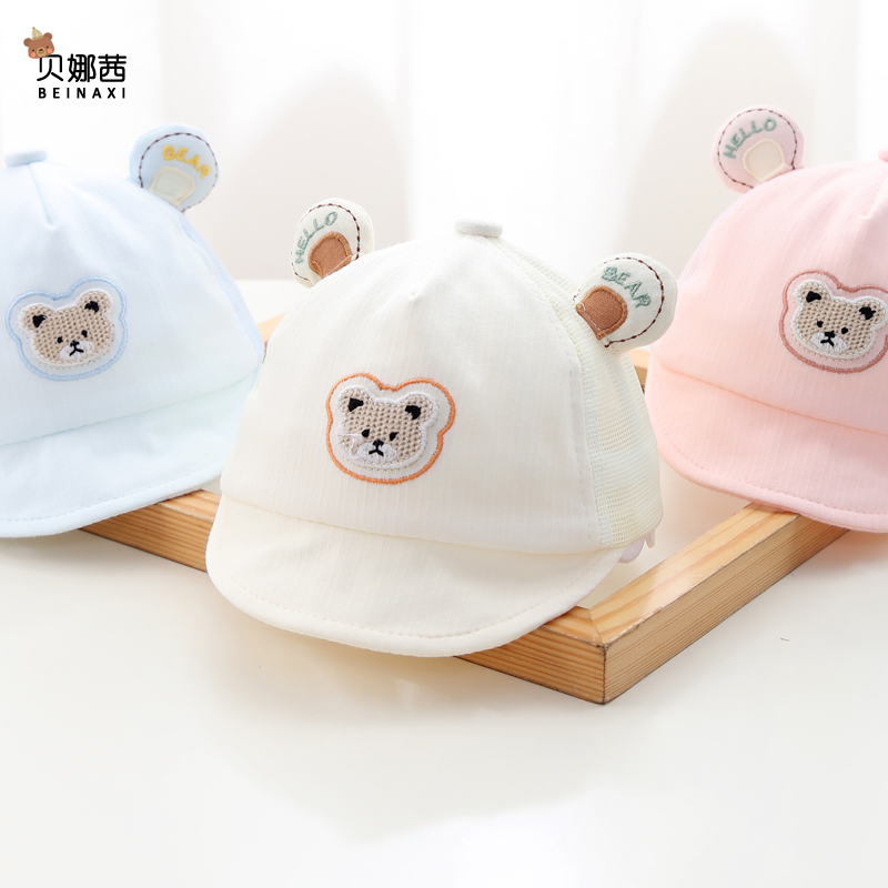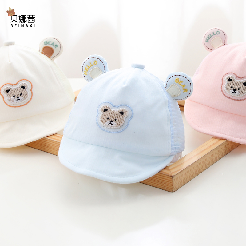 婴儿帽子夏季遮阳帽男宝宝防晒帽网眼鸭舌帽可爱新生儿棒球帽软檐