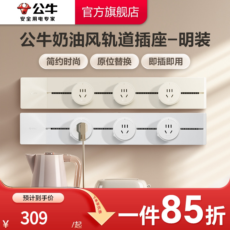 公牛可移动电力轨道插座厨房客厅排插家用拓展导台插座导轨插座