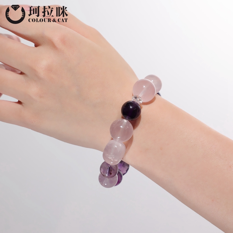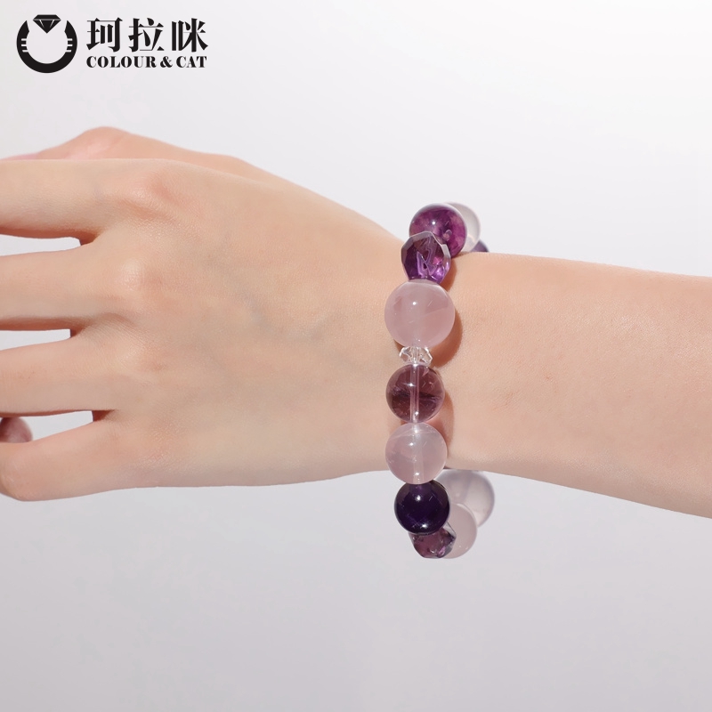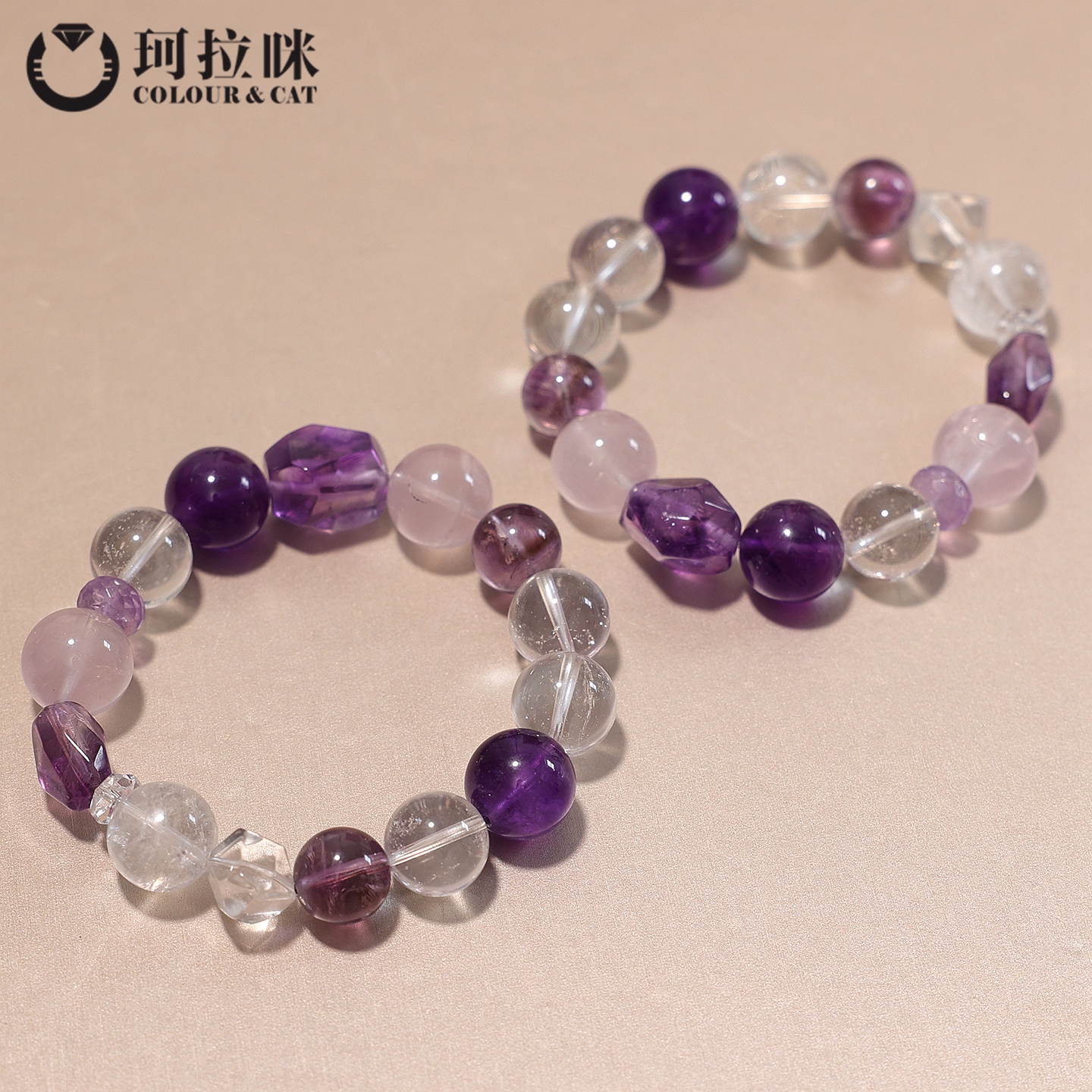 珂拉咪 天然白水晶紫水晶粉晶手链女款 多宝设计水晶手串转礼物