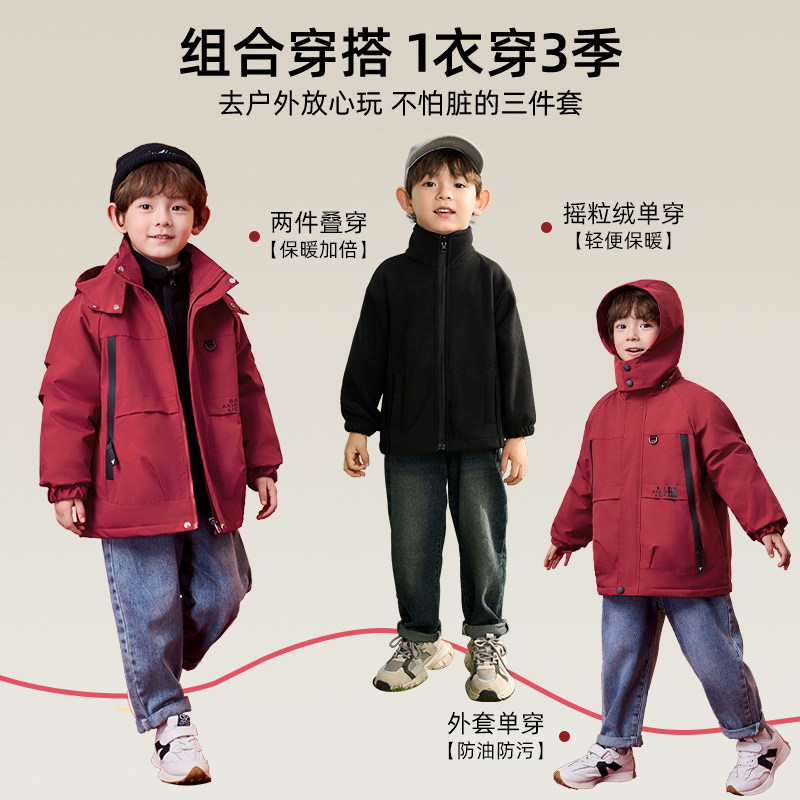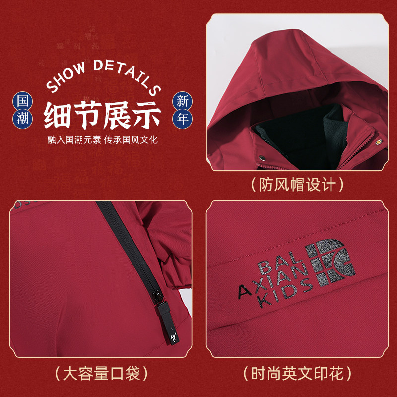 罗蒙儿童冲锋外套棉服2025新款喜庆过年红色拜年服男童三合一夹克