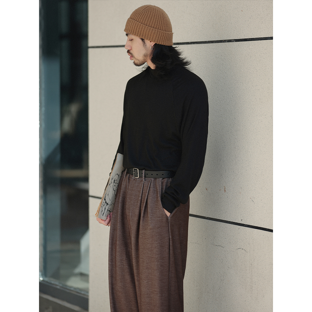 NOEARS秋冬黑色半高领长袖针织打底衫内搭日系基础款插肩袖上衣