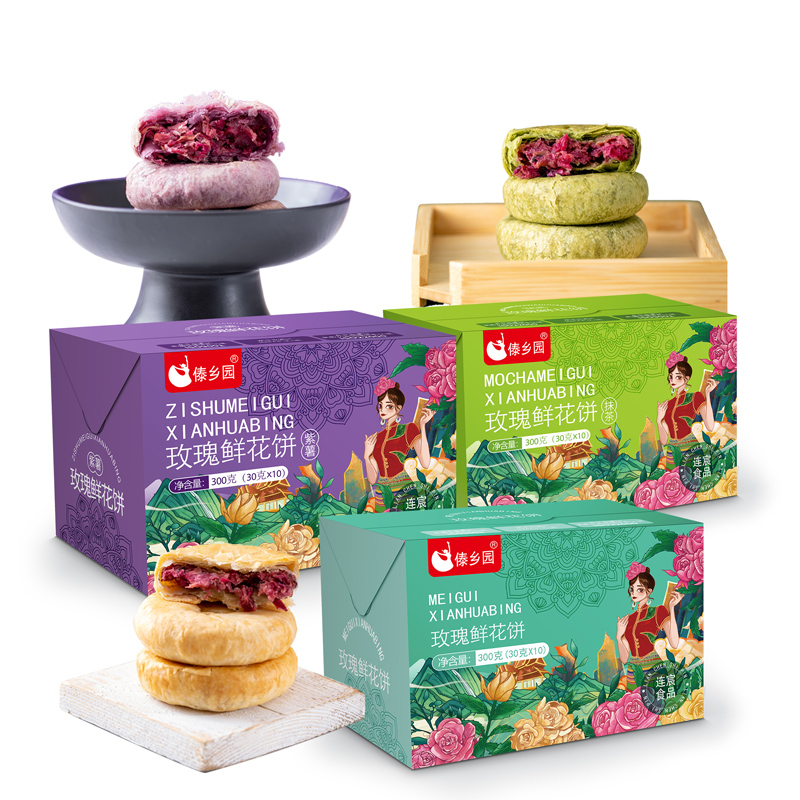 【3盒3口味到手30枚】傣乡园云南特产玫瑰鲜花饼三口味糕点心礼盒
