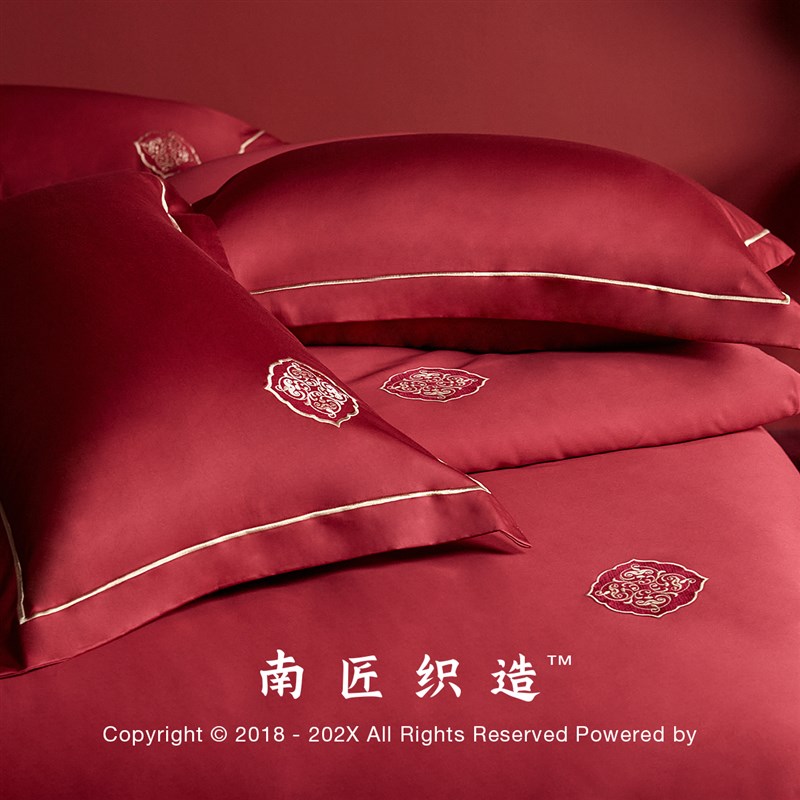 结婚床上用品四件套纯棉红色婚庆婚嫁新婚礼喜被贡缎床单中式婚房