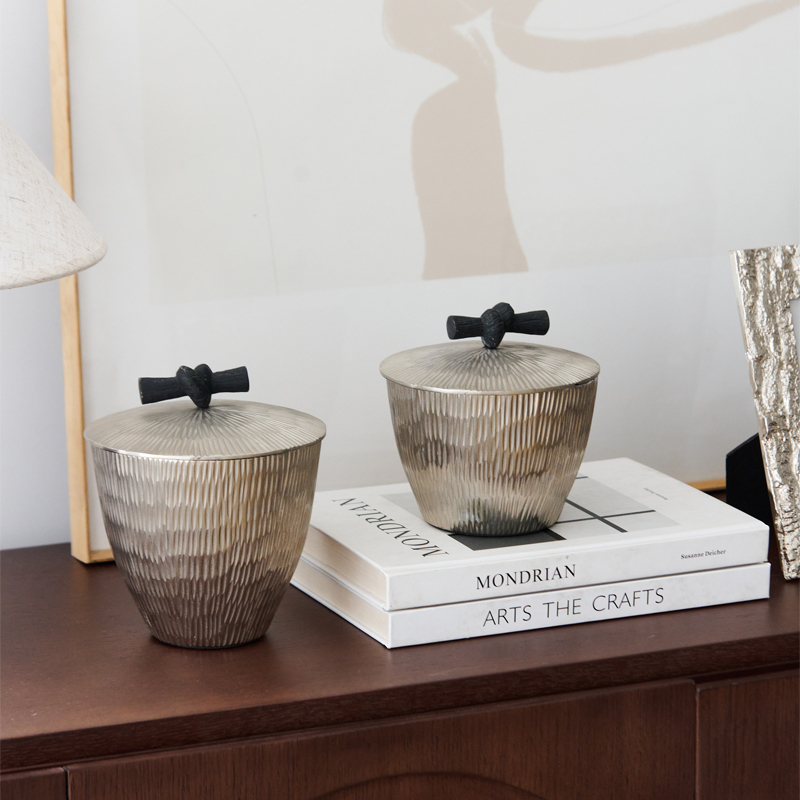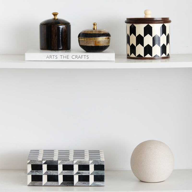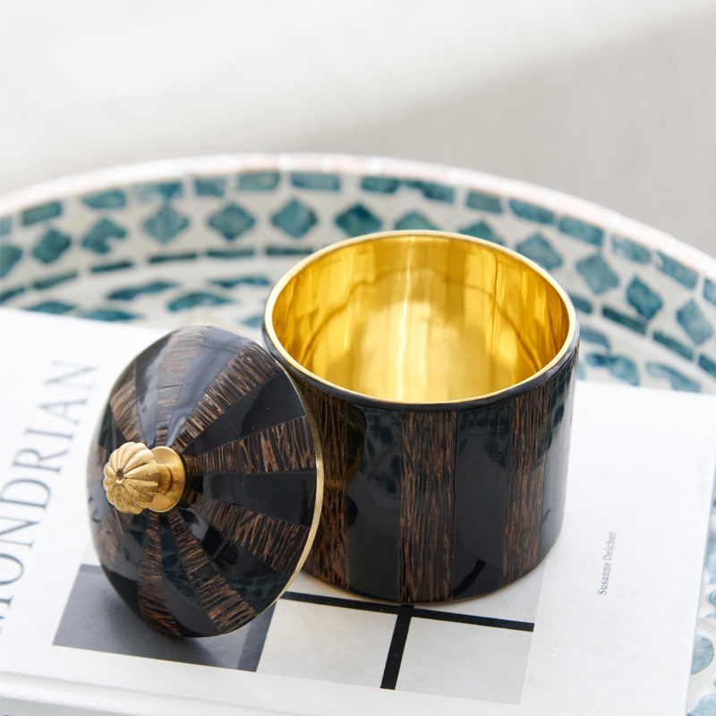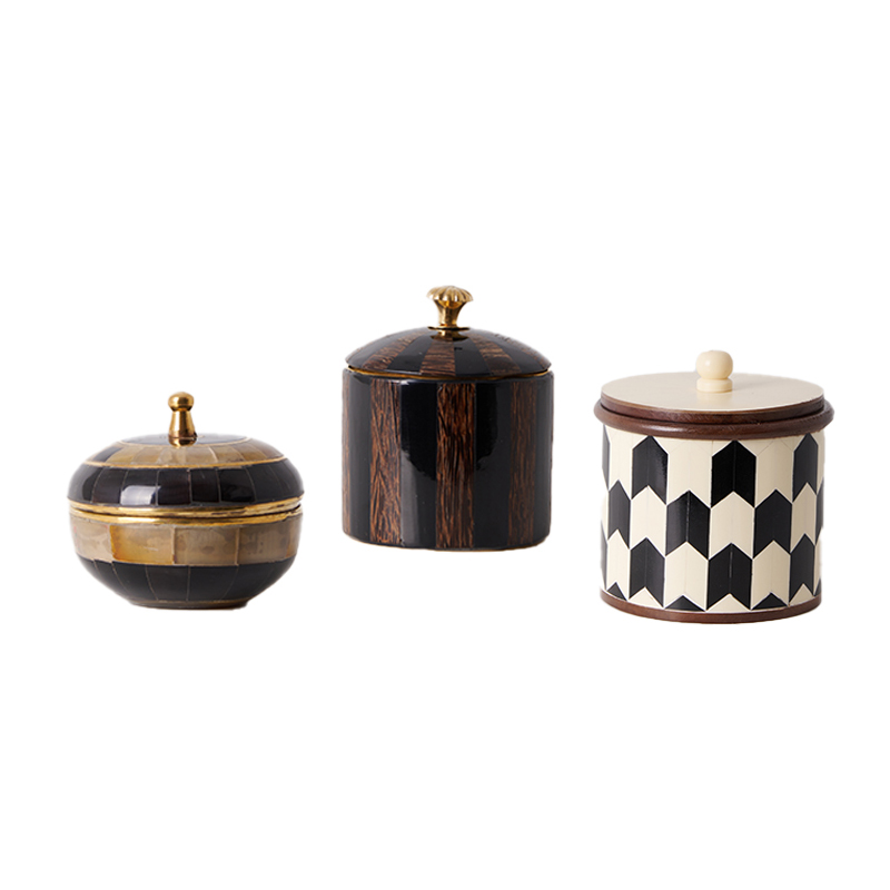 印度进口芒果木牛骨黄铜拼接复古首饰盒收纳罐子摆件样板间装饰品