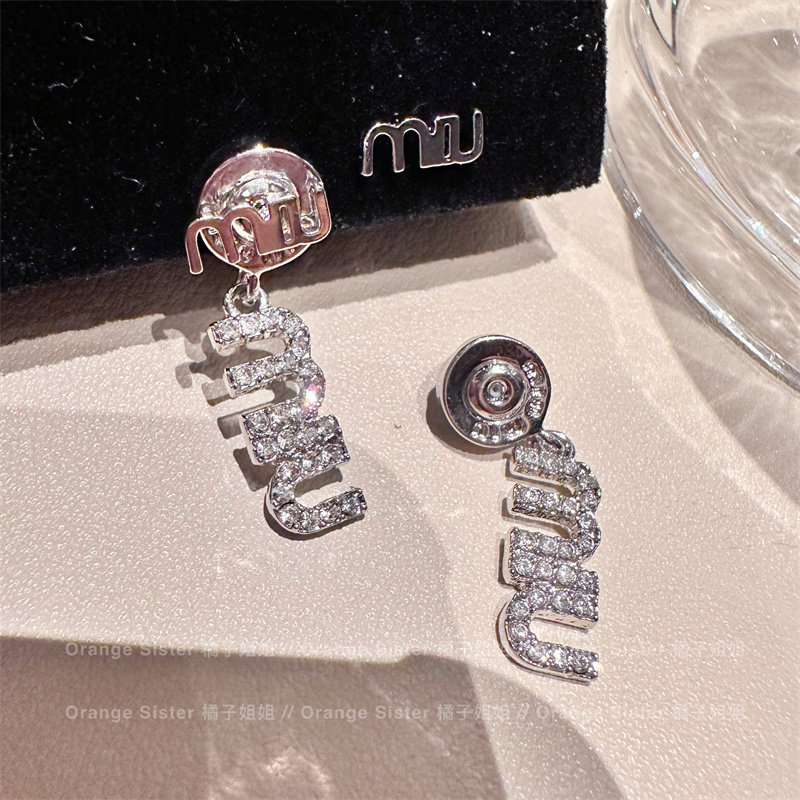 miu字母镶钻高级感耳环