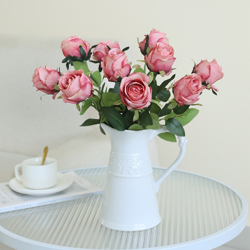 高档保加利亚玫瑰花仿真花假花摆设家居客厅餐桌电视柜装饰品摆件