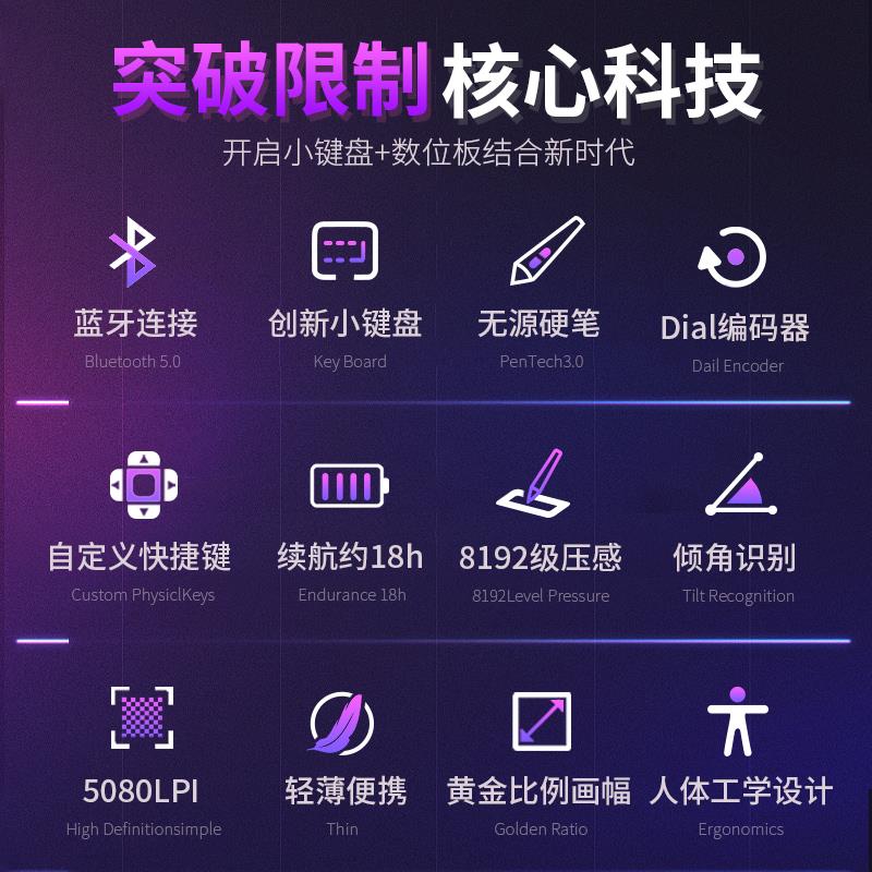 无线数位板KD200 电脑画板HUION 可连接手机手绘板 绘图板KD200