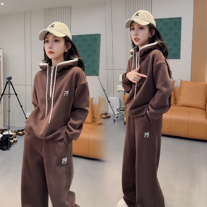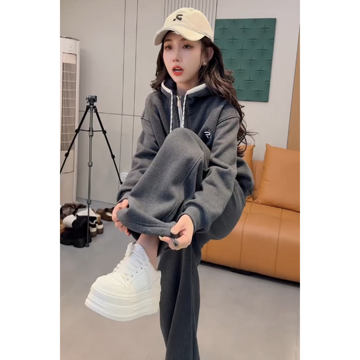 休闲运动套装女2025秋冬季穿搭韩系减龄时尚洋气加绒加厚卫衣卫裤