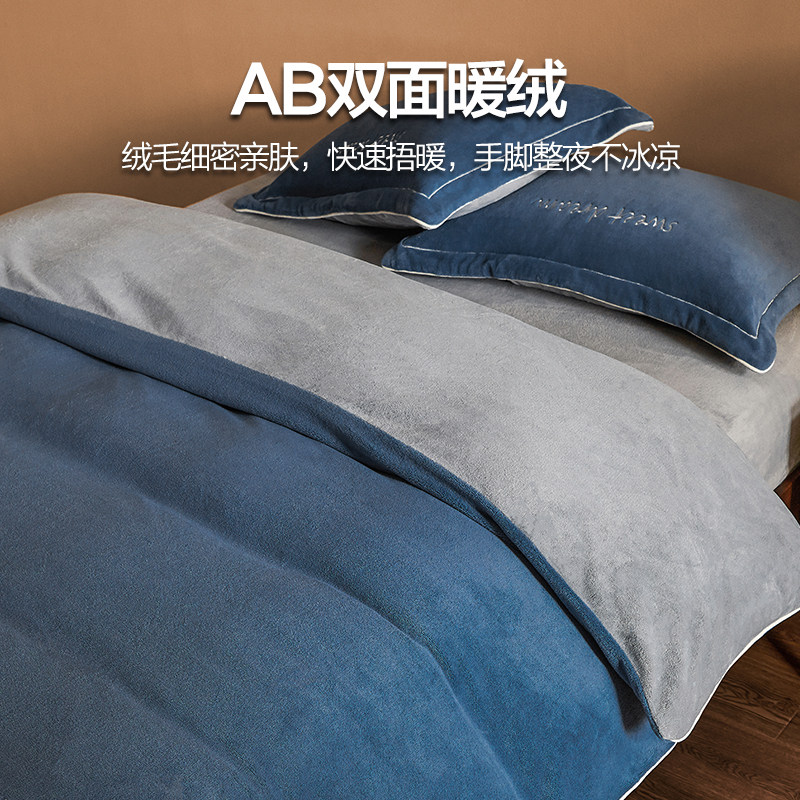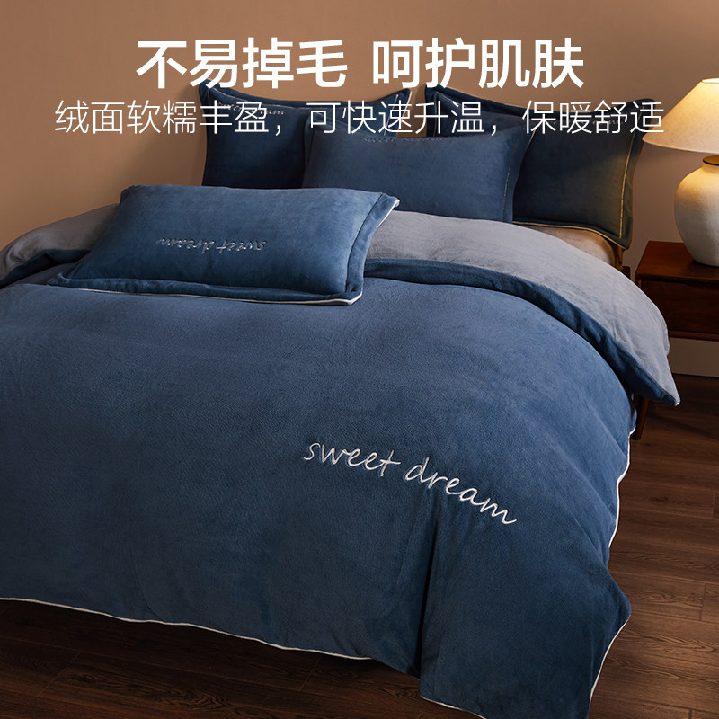 海澜之家牛奶绒四件套冬季加厚加绒珊瑚绒法兰绒床上被套床单床品