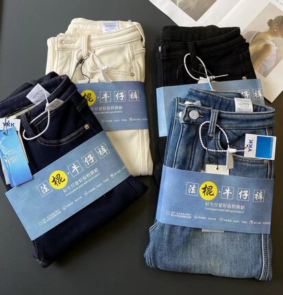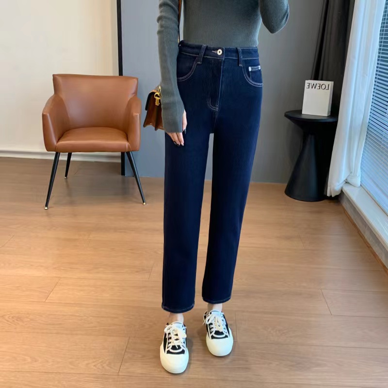 经典奥利绒九分法棍裤女冬季弹力修身显瘦加绒加厚高腰直筒牛仔裤