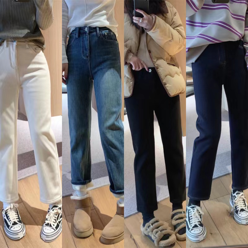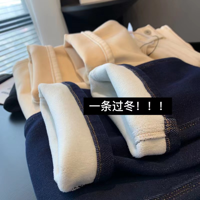 奥利绒加绒加厚高腰法棍牛仔裤女