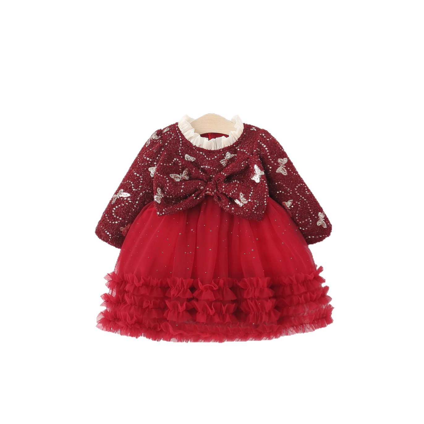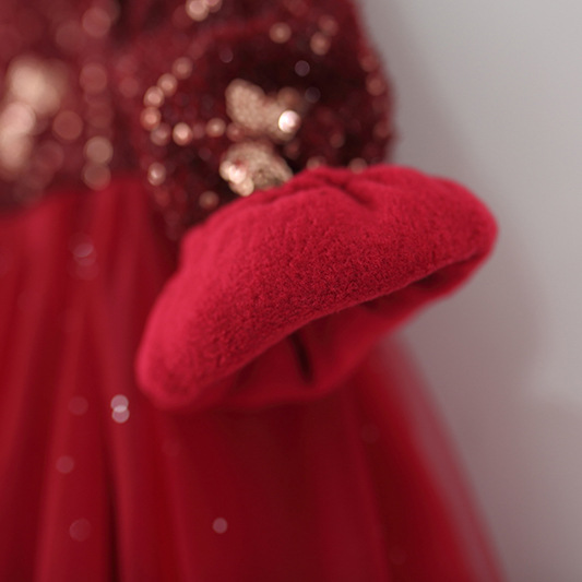 童装女童连衣裙秋冬季加绒婴儿童女宝宝亮片蝴蝶网纱公主裙子洋气