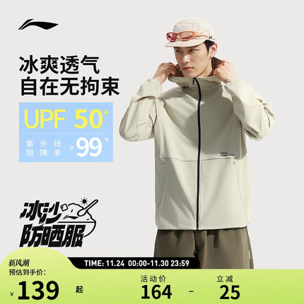 【25新品】李宁冰沙防晒服 男子夏季冰爽透气轻薄户外运动外套