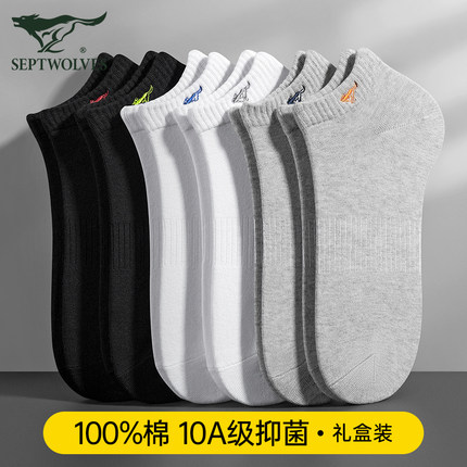 七匹狼纯棉袜子男士短袜防臭吸汗全棉春夏季新款抗菌运动男生船袜