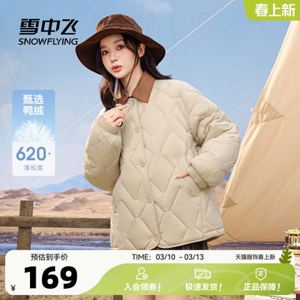 雪中飞热可可羽绒服2026春装新款女士时尚百搭菱形格休闲韩版外套