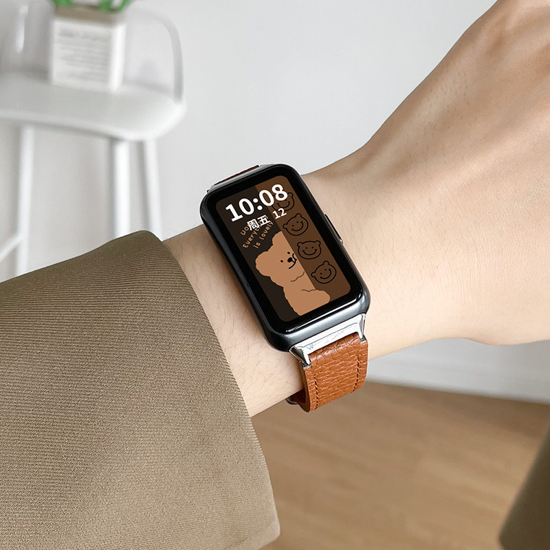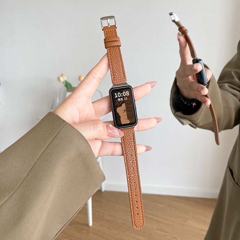 适用华为手环10/9手表带链8荔枝纹荣耀手环7nfc版手腕带真皮6pro女生智能运动八九代替换表链band9高级感新款