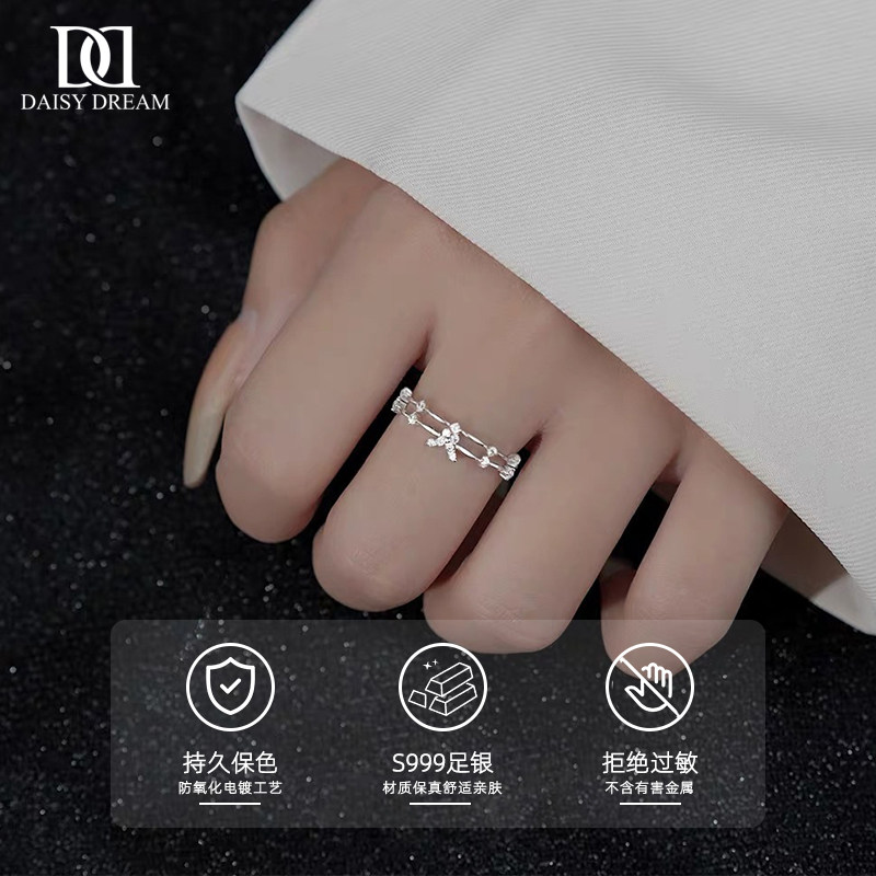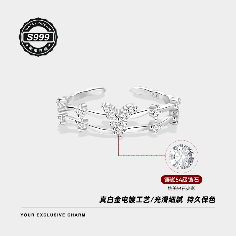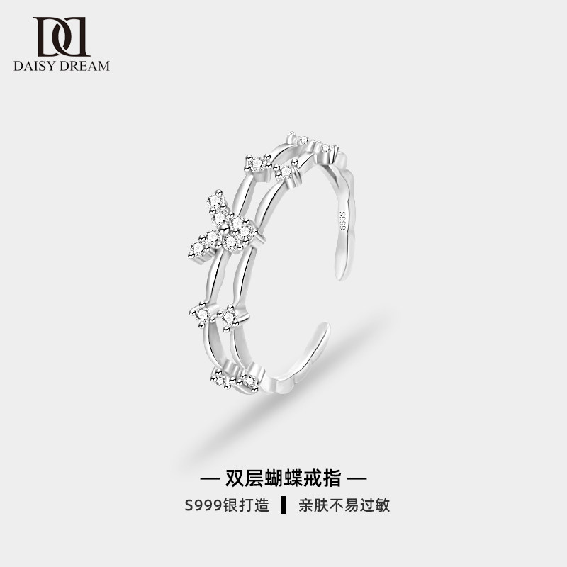 999纯银双层蝴蝶戒指女
