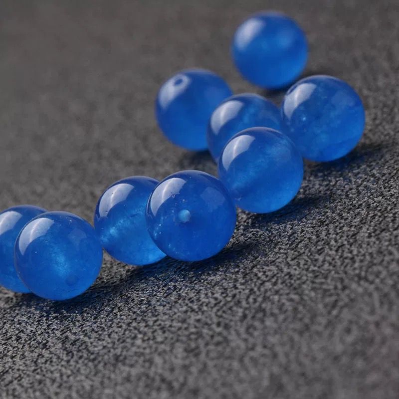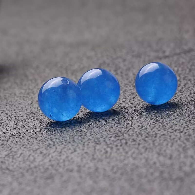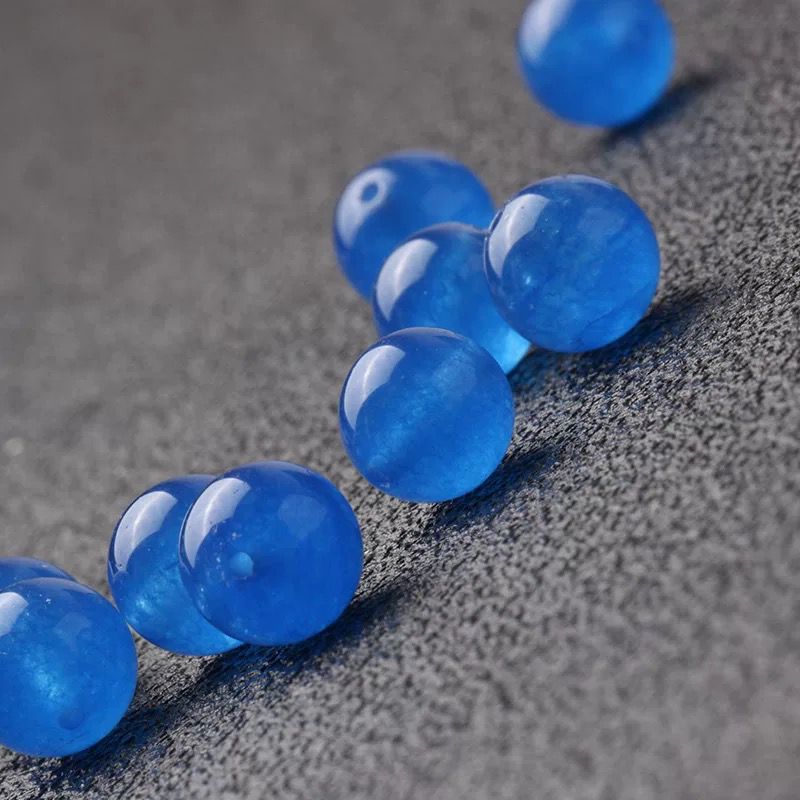天然精选单颗深蓝色玉髓半成品天然水晶圆珠蓝色玉石散珠 DIY配件