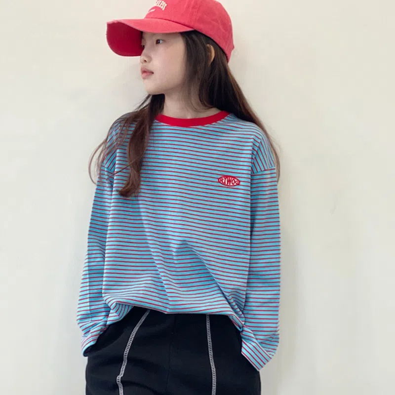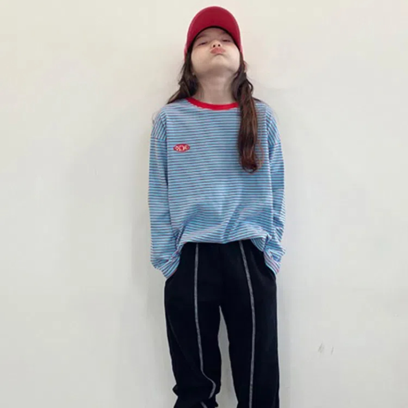 女大童长袖T恤春秋款童装条纹儿童休闲上衣女童运动百搭打底衫