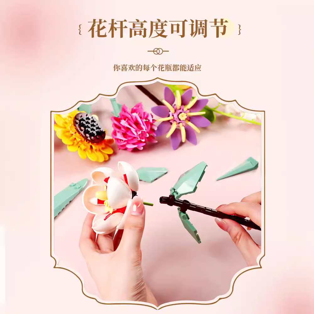 积木花束拼装永生花女孩DIY插花桌面摆件闺蜜生日礼物送老师妈妈