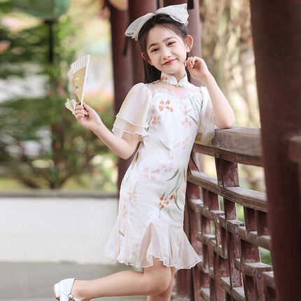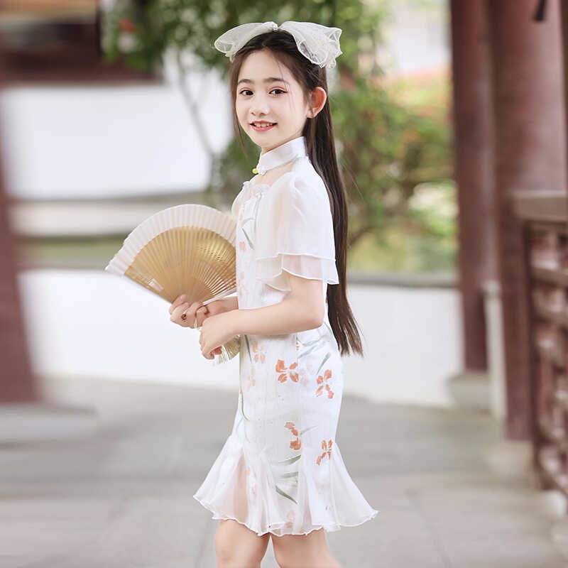 速发童旗袍高级感连衣裙2025新款夏装儿童改良鱼尾裙民国风孩大童