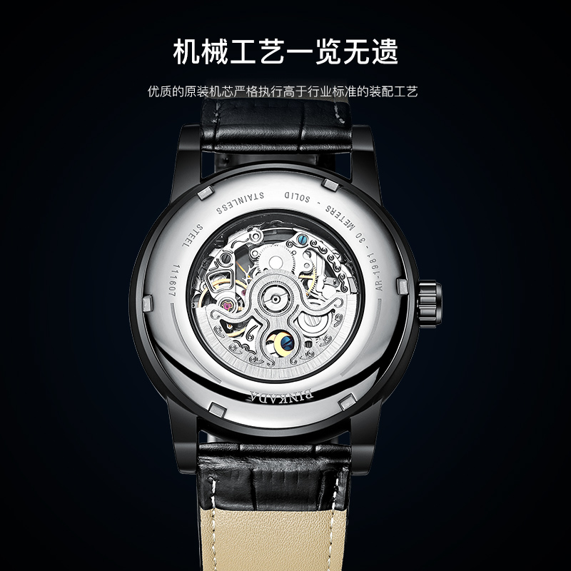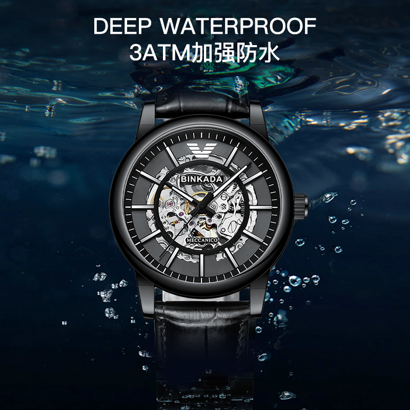 宾卡达正品男士手表全自动机械机芯名牌手表防水陀飞轮镂空腕表