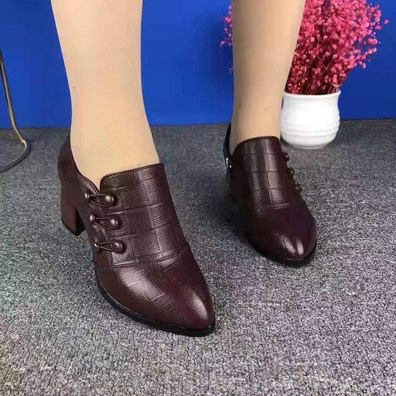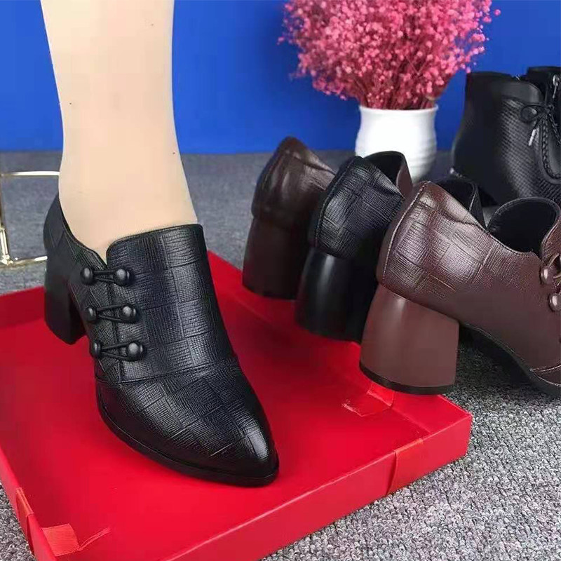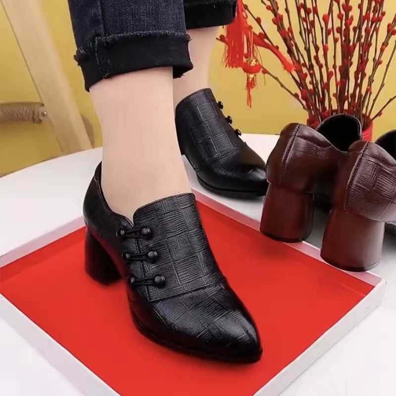 真皮单鞋女2025春季新款中跟舒适时尚女士皮鞋休闲百搭粗跟鞋