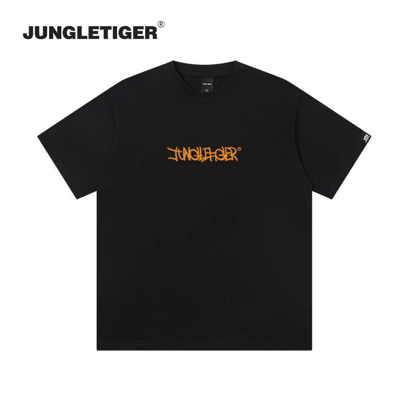 丛林老虎新款向日葵印花短袖男夏季日系宽松大码纯棉脏橘色t恤