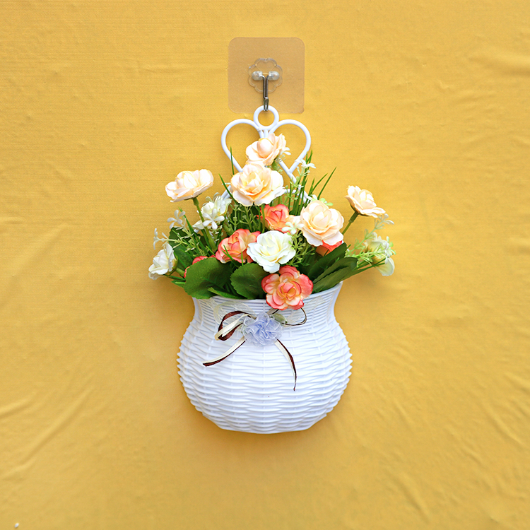 挂墙创意假花吊篮仿真玫瑰套装塑料栅栏客厅绢花墙壁挂墙面装饰花