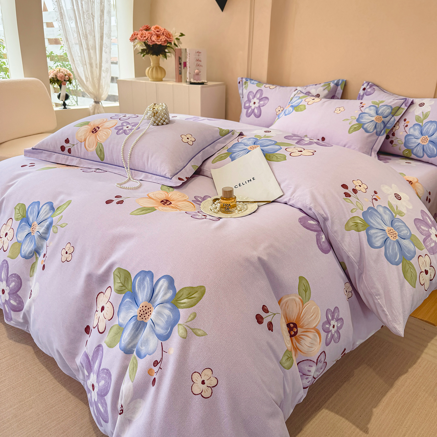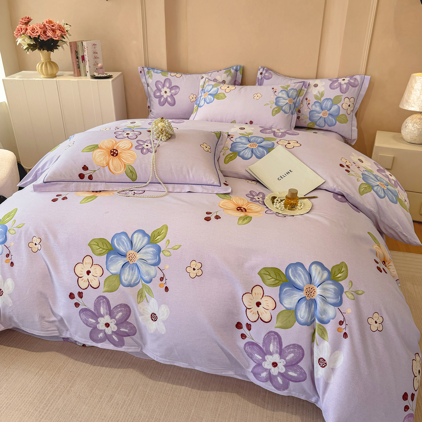 加厚全棉四件套简约100%磨毛被套单人双人纯棉床单被罩宿舍三件套