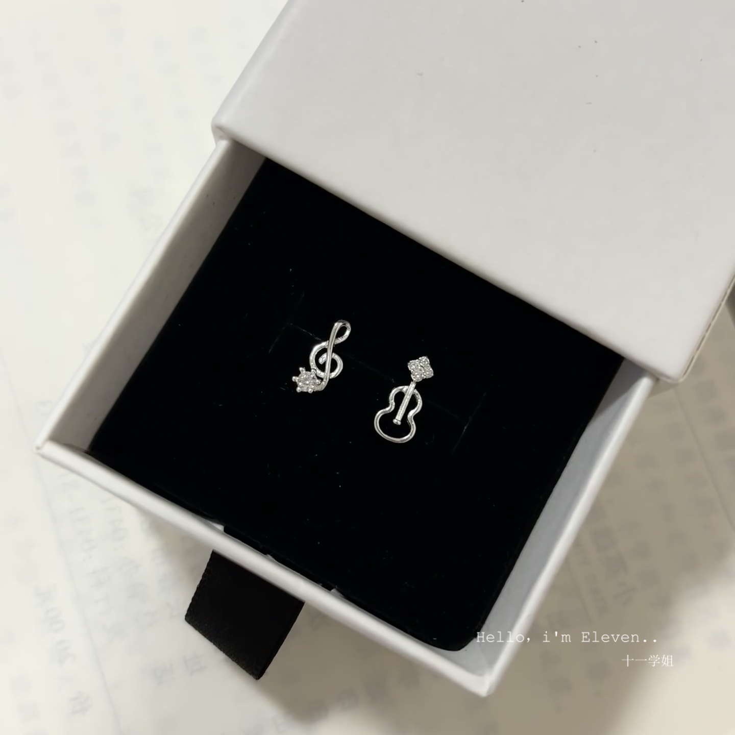 S925纯银不对称音符耳钉女小众设计感耳环个性百搭养耳洞休闲饰品