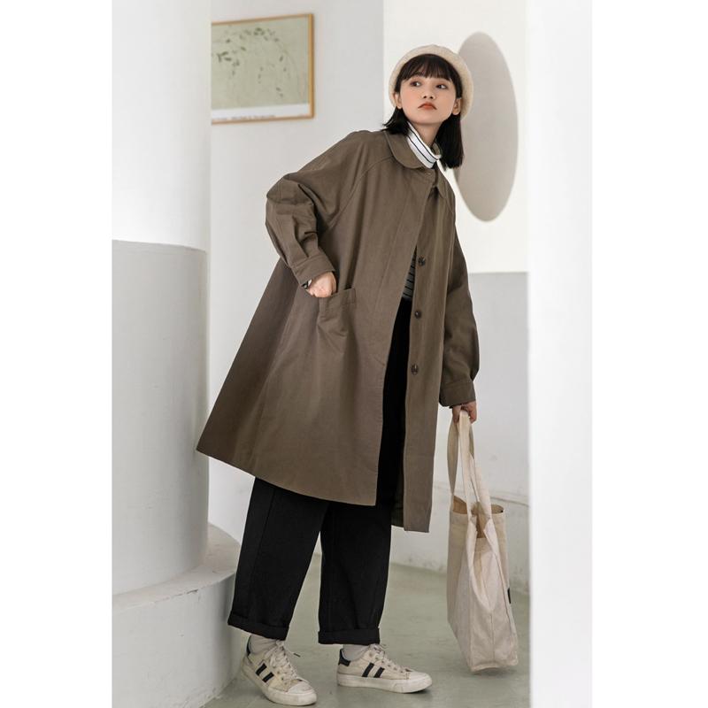 娃娃领中长款日系插肩袖风衣