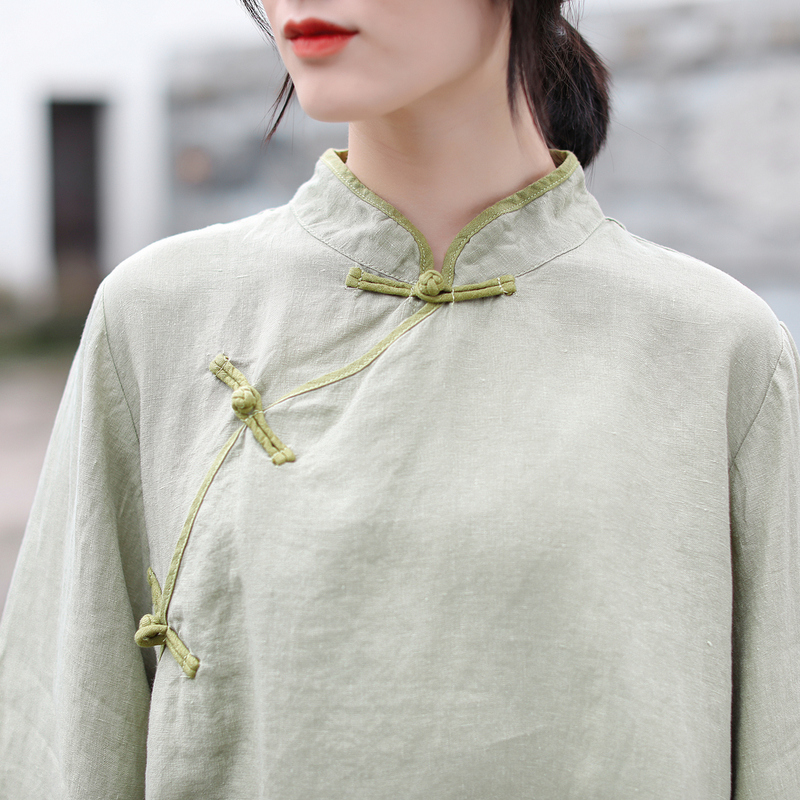 亚麻唐装女秋装上衣中式女装中国风茶服女禅意文艺佛系年轻款禅服