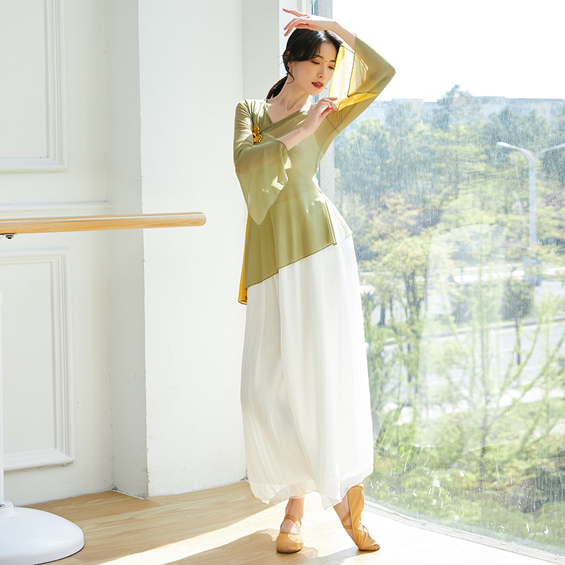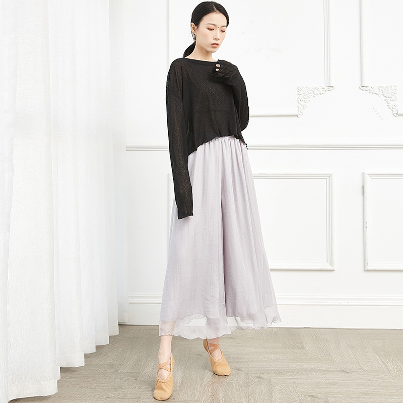 中国风古典舞身韵飘逸雪纺现代舞蹈练功服装女成人宽松阔腿裤子