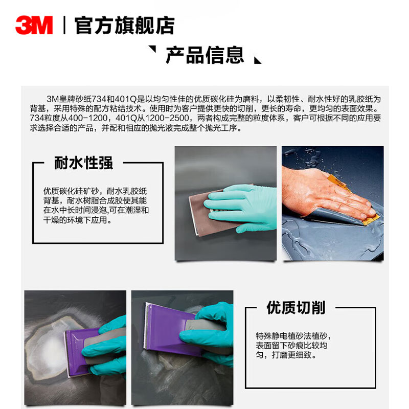 3M734水磨砂纸汽车美容打磨砂皮漆面抛光研磨1000目800目600目