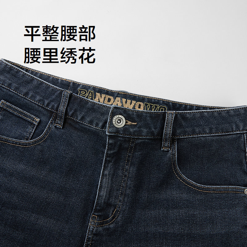 HLA/海澜之家panda wowo熊猫水洗猫须牛仔裤25秋新刺绣直筒裤男士