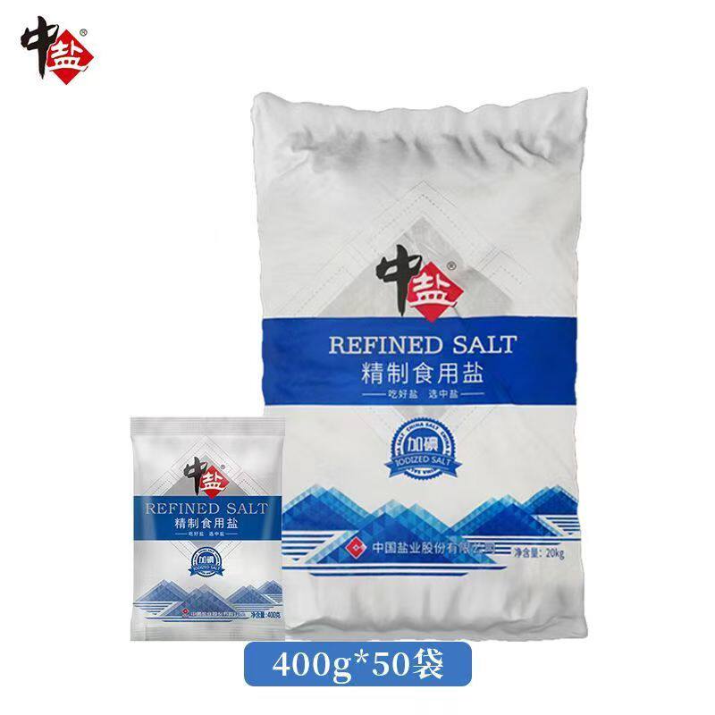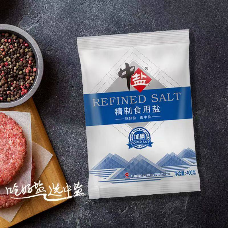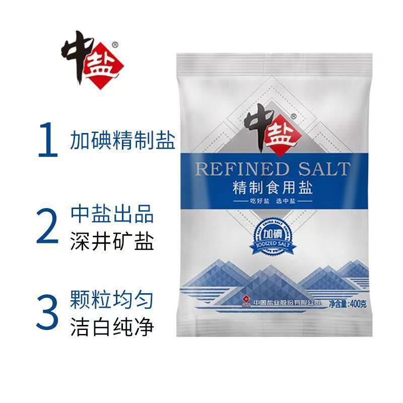 中盐精制食用盐加碘食盐家用炒菜调味品细盐井盐巴400g/袋